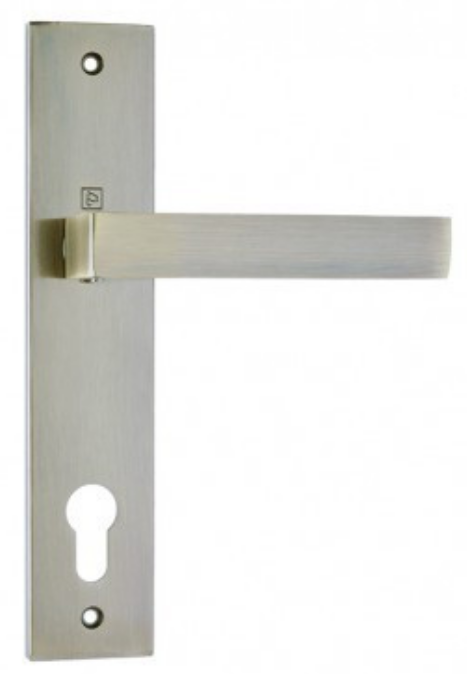 Interierové kovanie s hranatými štítmi a otvorom na vložku. Prevedenie: kľučka+ kľučka. Rozteč: 90mm Farba: nikel-satina.