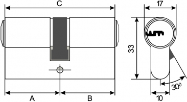 Bezpečnostná cylindrická vložka. Rozmery: 41×61 mm Bezpečnostná trieda: 3. stupeň- zvyšená ochrana. 6 aktívnych kolíkov, ktoré sú umiestnené v jednej rade a umožňujú viac ako pol milióna kľúčových kombinácií. Špeciálne tvarované, vysoko kvalitné kolíky chránia vložku proti vytrhnutiu jadra a manipulačnému otvoreniu. Na oboch stranách cylindra sa nachádzajú štyri prvky ochrany pred navŕtaním so zvýšenou tvrdosťou. Obe strany dvojradového kľúča, vytvoreného modernou technológiu bodového vŕtania sú symetrické, takže kľúč je možné vložiť do vložky ktoroukoľvek stranou. Vhodné do hotelov, pre veľké a komplexné systémy hl. kľúčov. Dodávané s 5-mi obojstrannými kľúčmi z mosadze a bezpečnostnou kartou, bez ktorej nie je možné vyrobiť kópiu kľúča. Povrchová úprava: matný nikel.