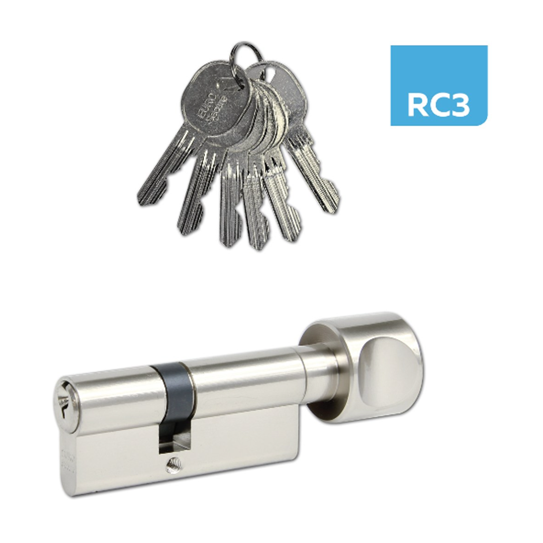 BEZPEČNOSTNÍ KNOFLÍKOVÁ 6STAVÍTKOVÁ VLOŽKA S ODOLNOSTÍ PROTI ODVRTÁNÍ A NEDESTRUKTIVNÍ DYNAMICKÉ METODĚ (TZV. BUMPING) Certifikováno v bezpečnostní třídě RC3 dle CSN EN 1627:2012. Certifikát NBÚ typ 2 SS4=2. Ochrana proti odvrtání pomocí 6prvků z kalené oceli. Tvoří ji 5 kolíku a 1 stavítko. Možnost společného uzávěru – SU 40.000 reálných kombinací klíče. Materiál vložky a klíčů: mosaz Povrchová úprava: matný nikl (NI) Volně kopírovatelný klíč. Certifikát TU