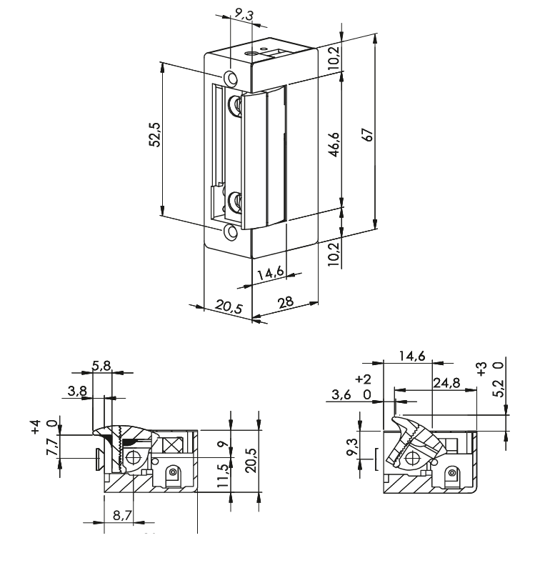 Elektrický zámok 20mm reverzný reverzný znamená že v zatvorenom stave je pod prúdom a v otvorenom bez napätia použitie na panikové dvere ktoré v prípade vypadnutia prudu musia byť otvorené Napájanie: 12V AC/DC striedavé/jednosmerné Vhodný pre pravé aj ľavé dvere.