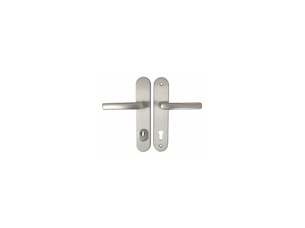 Masívne hliníkové bezpečnostné kovanie v 3. tr. bezpečnosti (vysoká ochrana) s prekrytím proti odvŕtaniu. Hliníkové kovanie s kvalitným eloxovaným povrchom dobre odoláva vonkajšiemu prostrediu. Jednoduchá montáž (neobsahuje stredná skrutka). Pri rozteči 72-90 pre hrúbku dverí 40 – 55mm, u rozteči 92mm pre hrúbku 67 – 80mm, na silnejšie dvere je možné použiť predĺženie. Nie je potrebné rozlišovať pravú a ľavú kľučku, pred montážou sa kovanie otočí do správnej polohy. Šírka štítu: 50mm. Model: kľučka/kľučka. Farba: F1-strieborná.