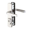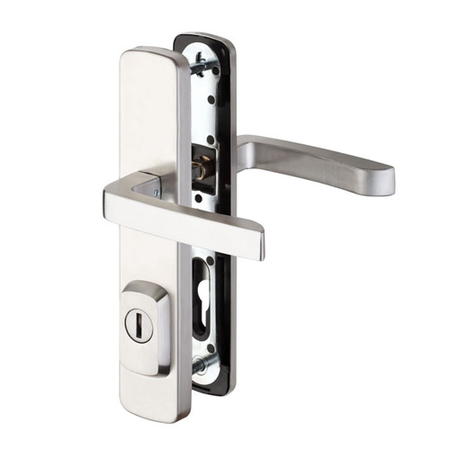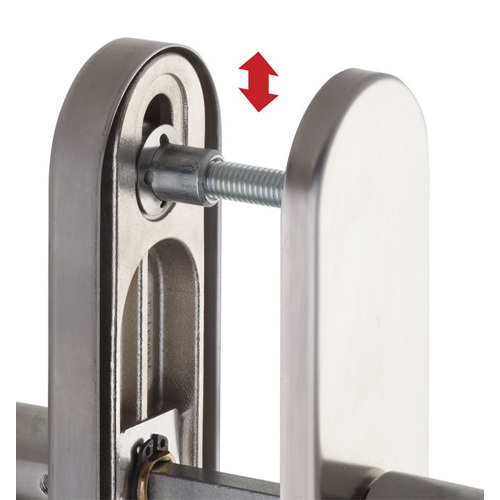 Bezpečnostné kovanie je dodávané bez cylindrickej vložky a je určené na vstupné dvere otvárané dovnútra i von, hrúbka dverí 40 – 50 mm, ďalej po 10 mm až do hrúbky dverí 100 mm.