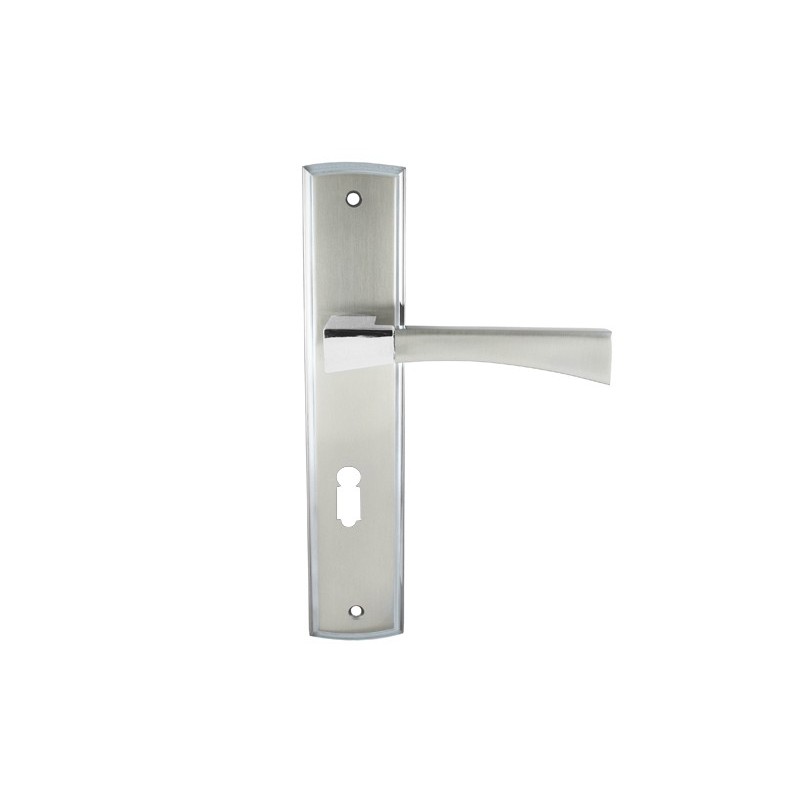 Interierová kľučka s otvorom na kľúč. Prevedenie: kľučka+kľučka. Rozteč: 90 mm ( vzdialenosť medzi osou kľučky a osou kľúča.) Farebné prevedenie: nikel/chróm.