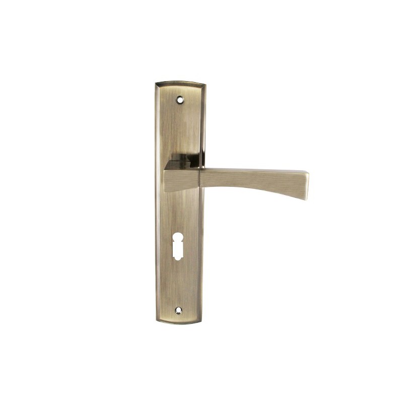 Interierová kľučka s otvorom na kľúč. Prevedenie: kľučka+kľučka. Rozteč: 90 mm ( vzdialenosť medzi osou kľučky a osou kľúča.) Farebné prevedenie: patyna.