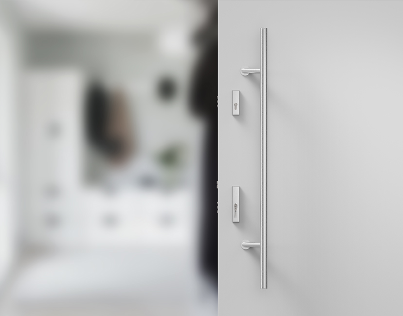 Madlo jednostranné vyosenné nerezové okrúhle s podložkami a montážnou sadou.