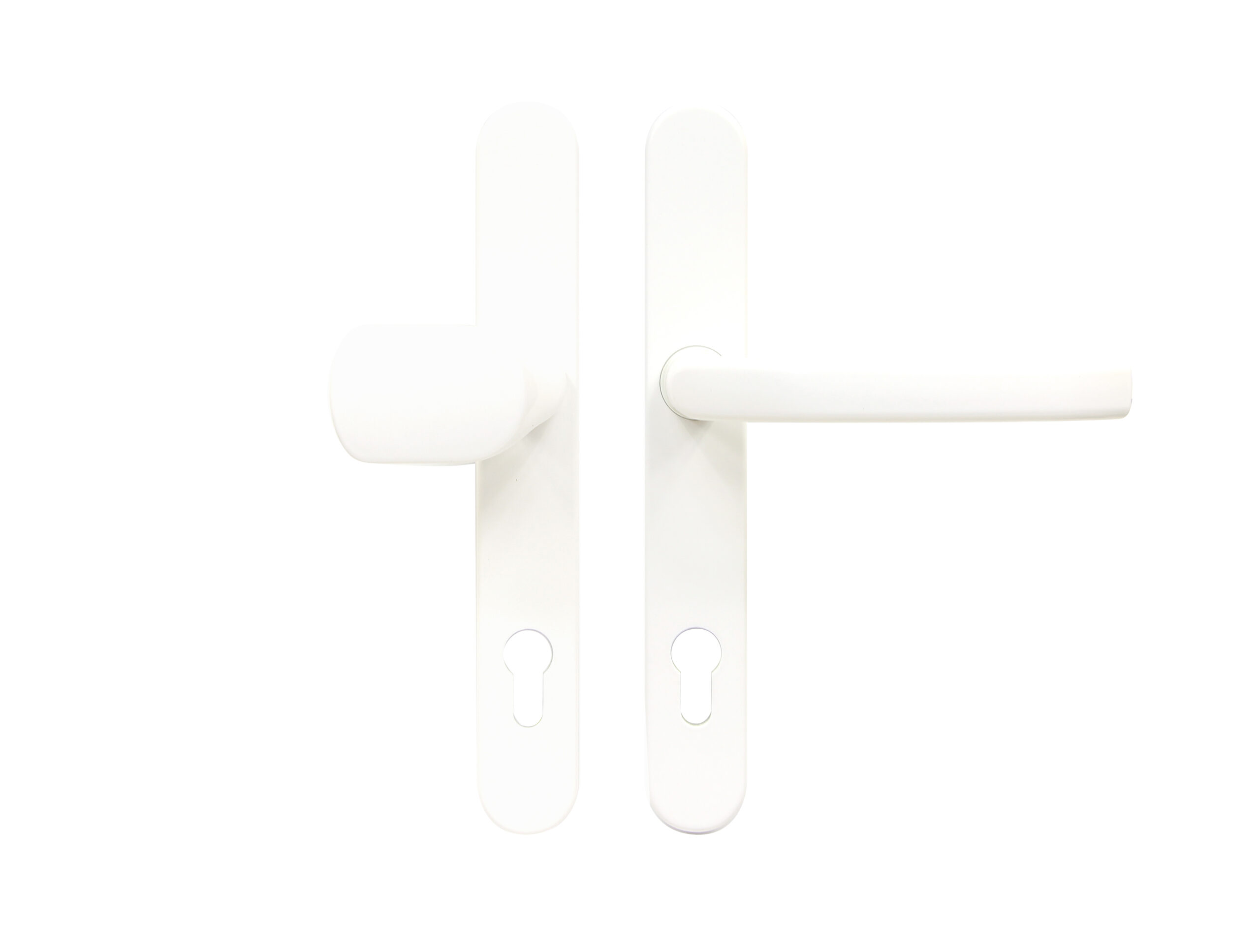 Masívne hliníkové kovanie pre vstupné dvere. Kľučka je pevne ukotvená na štítku. Skrutky sú schované na vnútornej strane štítku. Vratný mechanizmus kľučky je tvorený štyroma pružinami s hranolom. Balenie obsahuje: štvorhran 8x8mm, 3ks spojovacích skrutiek M6x100mm a vŕtaciu śablónu. Model: kľučka/guľa Farba: biela