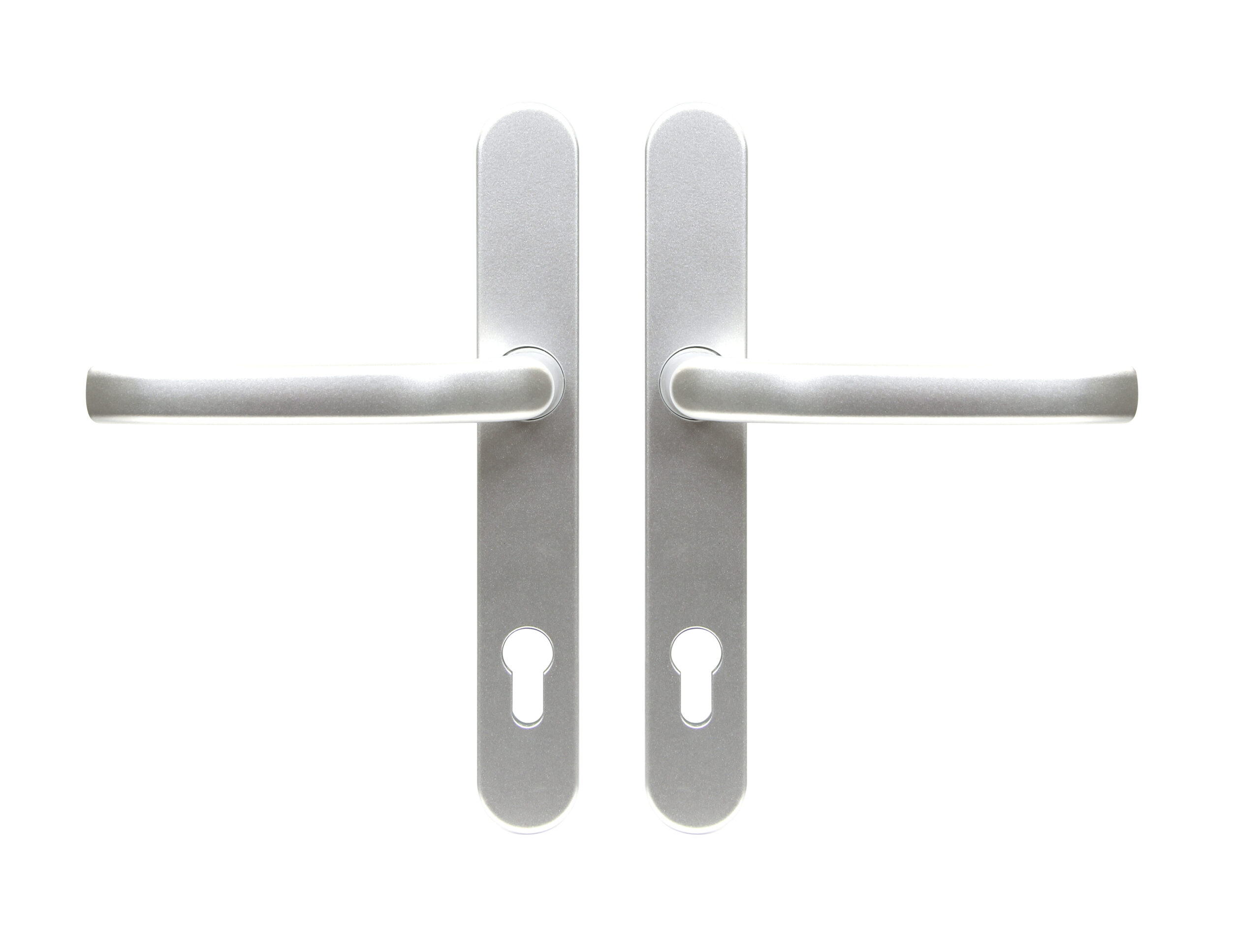 Masívne hliníkové kovanie pre vstupné dvere. Kľučka je pevne ukotvená na štítku. Skrutky sú schované na vnútornej strane štítku. Vratný mechanizmus kľučky je tvorený štyroma pružinami s hranolom. Balenie obsahuje: štvorhran 8x8mm, 3ks spojovacích skrutiek M6x100mm a vŕtaciu šablónu. Model: kľučka/kľučka Farba: strieborná
