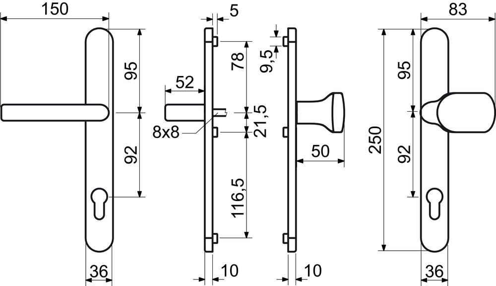 Masívne hliníkové kovanie pre vstupné dvere. Kľučka je pevne ukotvená na štítku. Skrutky sú schované na vnútornej strane štítku. Vratný mechanizmus kľučky je tvorený štyroma pružinami s hranolom. Balenie obsahuje: štvorhran 8x8mm, 3ks spojovacích skrutiek M6x100mm a vŕtaciu śablónu. Model: kľučka/kľučka Farba: bronzová