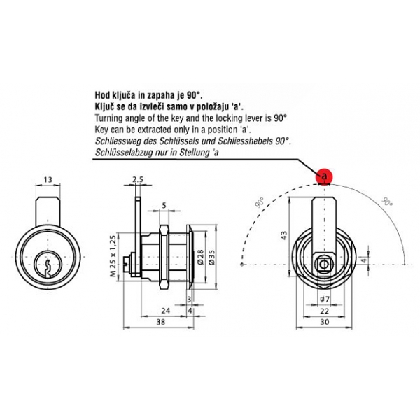Zámok Titan KO-13 K1 nábytkový zámok 3kl