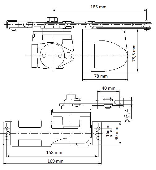 Regulácia dovierania dverí. Možnosť montáže na P aj Ľ dvere. Možnosť montáže naopak (napr. z dôvodu nedostatku priestoru), funkcie zostávajú zachované. Vhodný pre exteriér aj interiér. Prevedenie vo farbe striebornej alebo zlatej. Hmotnosť dverí: 20-40kg. Hmotnosť: 2,4kg