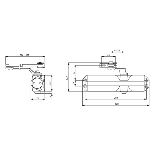 Pastorkový dveřní zavírač Dorma TS 68 je vhodný pro interiérové nepožární dveřní křídla o max. hmotnosti cca 50 kg a max. šířce cca 900 mm (mezní parametry dveří jsou orientační, vždy záleží na poměru hmotnosti, šířky, polohy a četnosti používání dveří). Síla zavírače v rozsahu EN 2/3/4 je nastavitelná polohou zavírače na dveřním křídle, rychlost zavírání v intervalech 180°- 0°a 15°- 0° je plynule regulovatelná ventily a koncový doraz lze regulovat pomocí ramínka. Dveřní zavírač Dorma TS 68 je certifikován dle EN 1154 ( CE ). Základní specifikace: pro nepožární a interiérové dveře zavírací síla EN2/3/4 aretace – ne hmotnost dveří 40-70 kg šířka dveřního křídla 850-1100 mm barevné provedení: stříbrná, bílá, hnědá, zlatá
