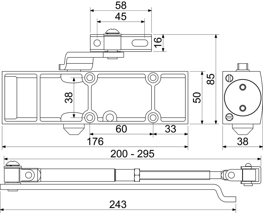 Dverný zatvárač pre interierové dvere.