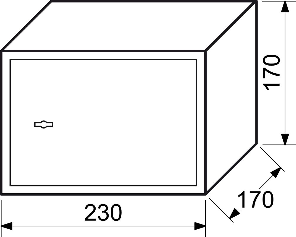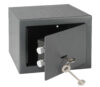 Oceľový trezor s mechanickým zámkom. Rozmery vonkajšie: 230x170x170 mm (šxvxh) Rozmery vnútorné: 228x168x110 mm (šxvxh) Hmotnosť: 3,2kg Sila materiálu: dvere 3mm, plášť 1mm. Farba: šedá Možnosť ukotvenia do steny alebo do podlahy. Balenie obsahuje: oceľové hmoždinky, skrutky a 2ks kľúčov. Objem: 4L