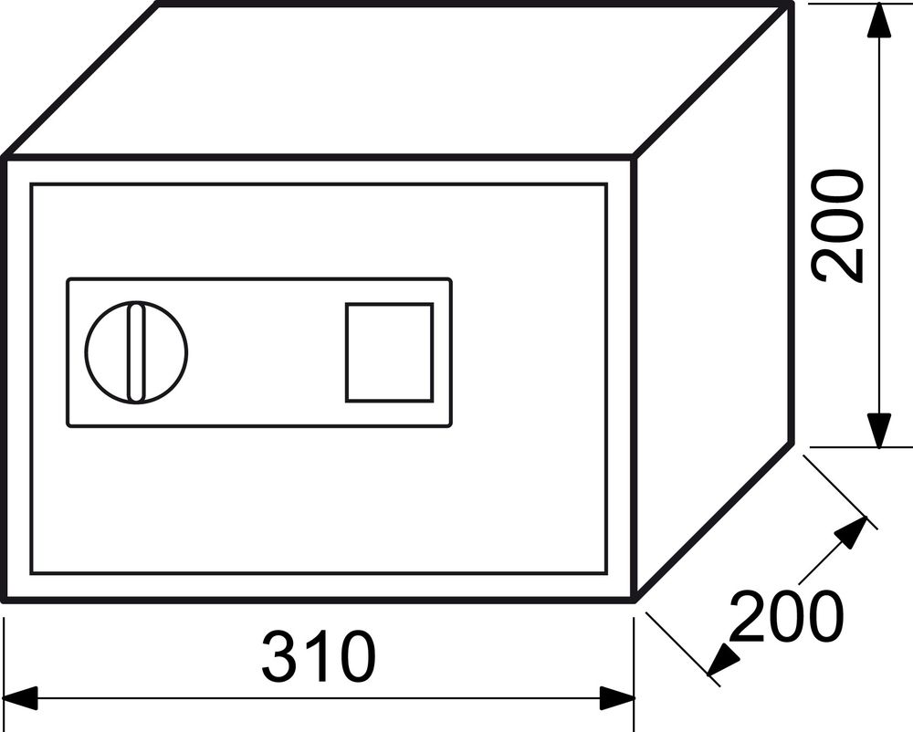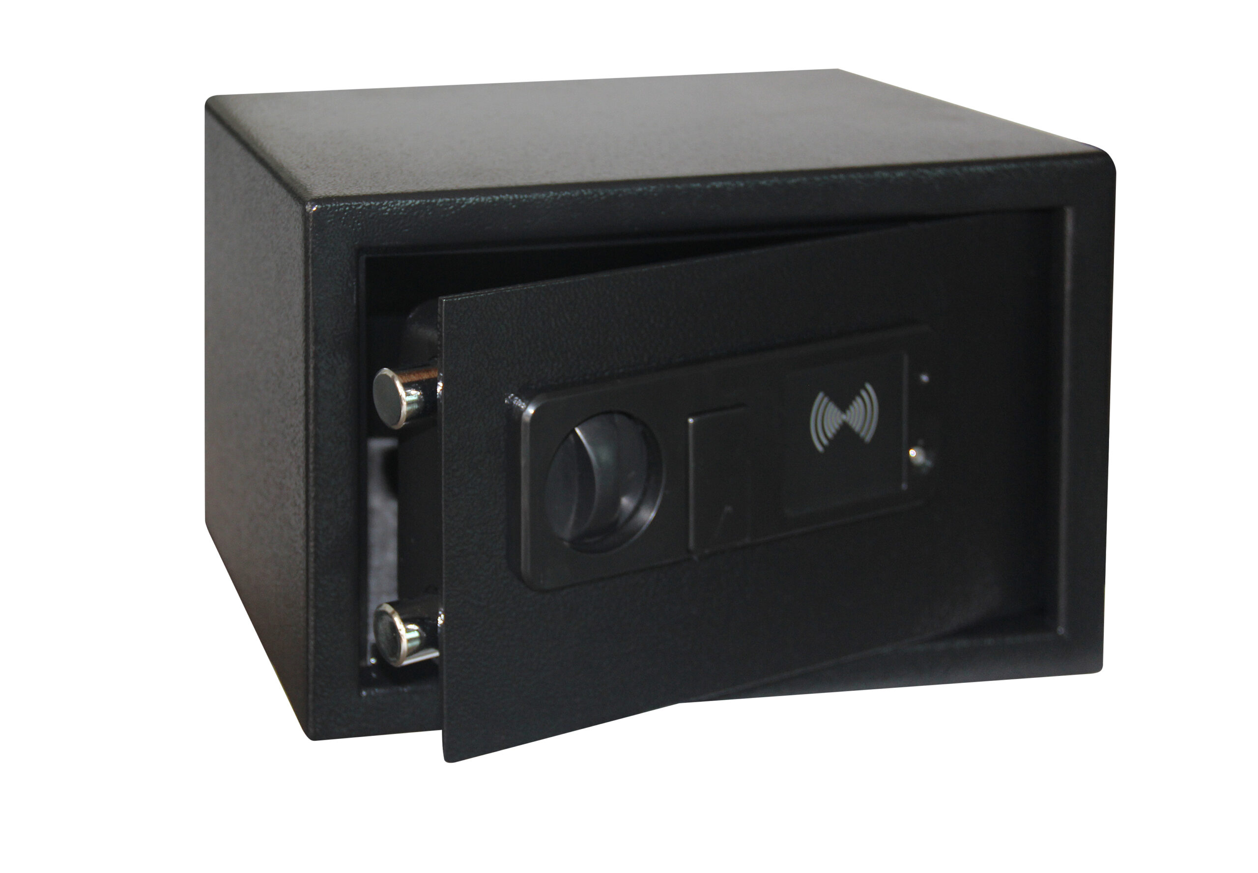 Oceľový trezor s elektronickým zámkom a ovládaním na čip (karta, prívesok,..) Vonkajšie rozmery: 310x200x200mm (šxvxh) Vnútorné rozmery: 306x196x140mm (šxvxh) Hmotnosť: 7,5kg, objem: 8L. Sila materiálu: dvere: 4mm, plášť: 2mm. Farba: čierna Možnosť ukotvenia do steny alebo do podlahy. Balenie obsahuje: 1ks karty, 1ks prívesok, batérie, 2ks núdzových kľúčov, oceľové hmoždinky a skrutky.