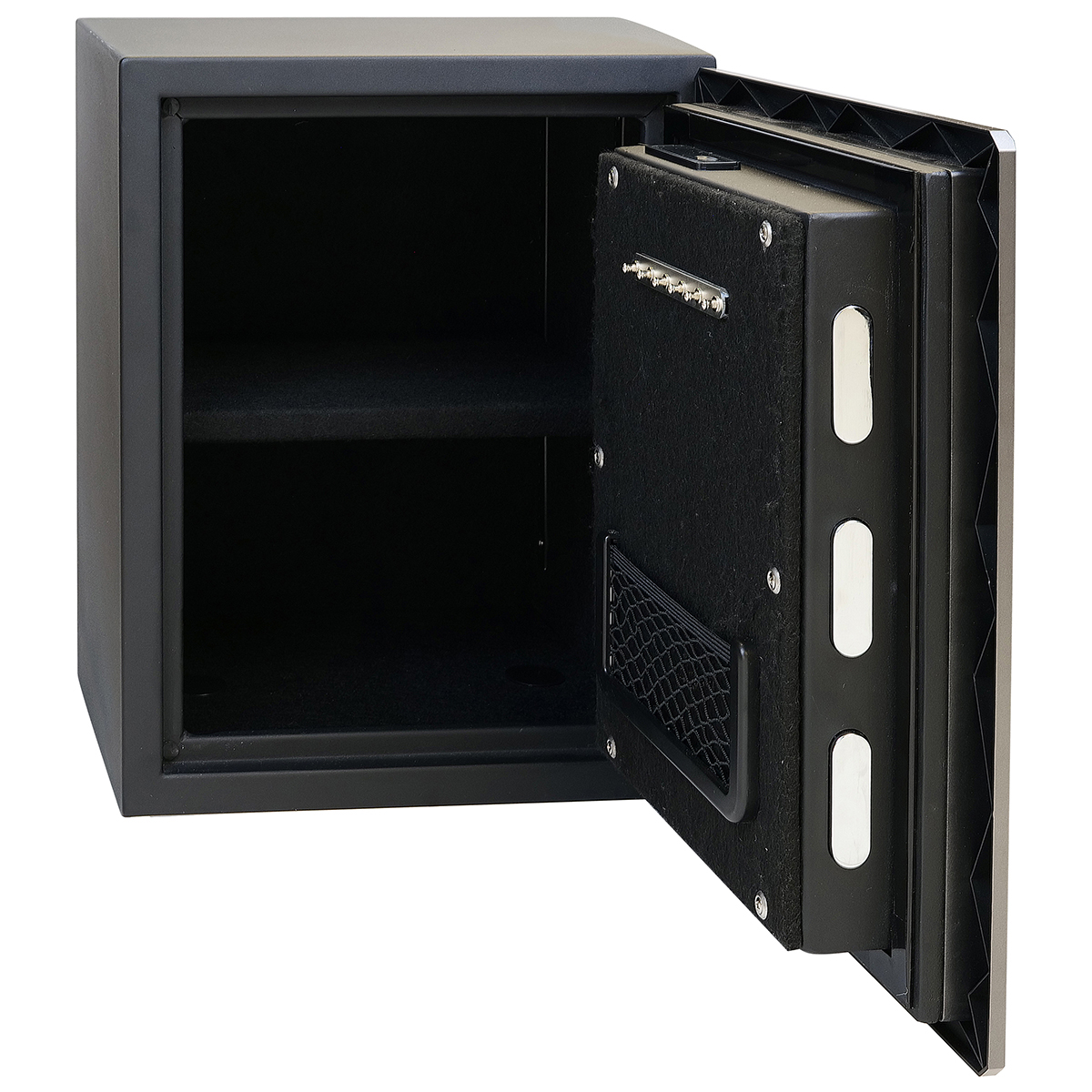 Ocelový sejf v protipožárním provedení s elektronickým zámkem na otisk prstu a číselným kódem