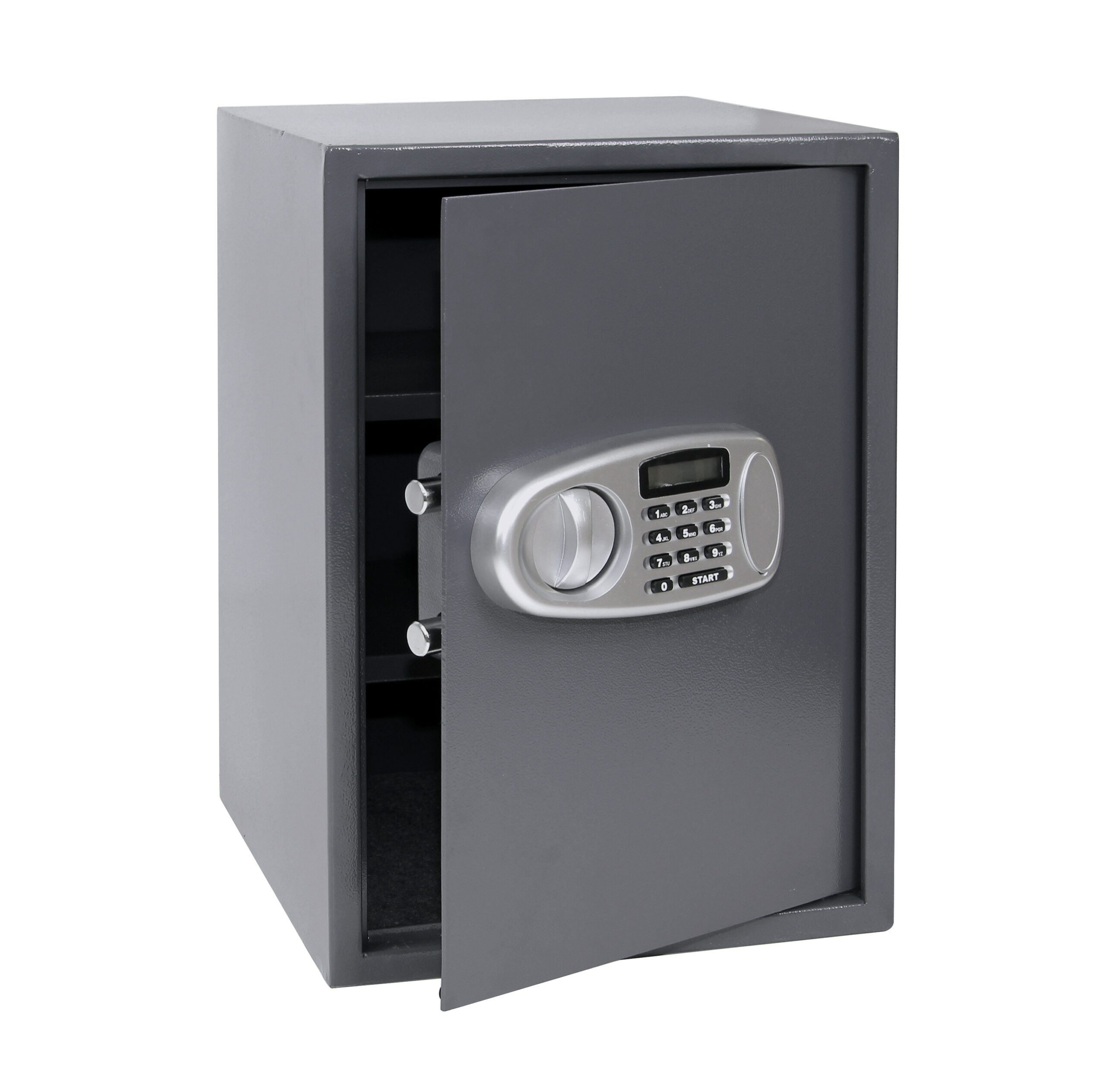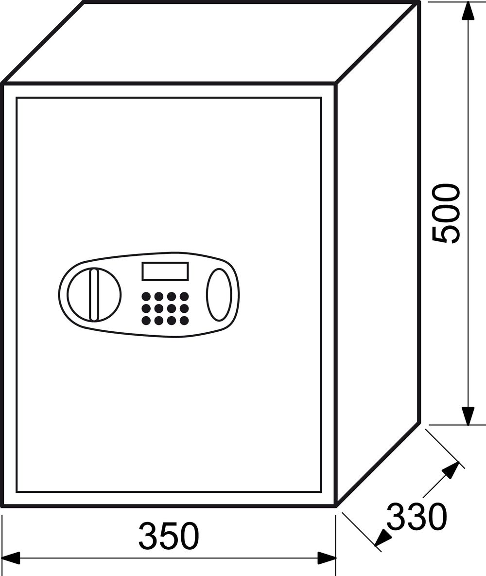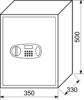 Oceľový trezor s elektronickým zámkom a LCD displejom. Vonkajšie rozmery: 350x500x330mm (šxvxh) Vnútorné rozmery: 346x496x270mm (šxvxh) Hmotnosť: 18kg, objem: 46L. Sila materiálu: dvere: 4mm, plášť: 2mm. Farba: šedá Možnosť ukotvenia do steny alebo do podlahy. Balenie obsahuje: batérie, 2ks núdzových kľúčov, oceľové hmoždinky a skrutky.