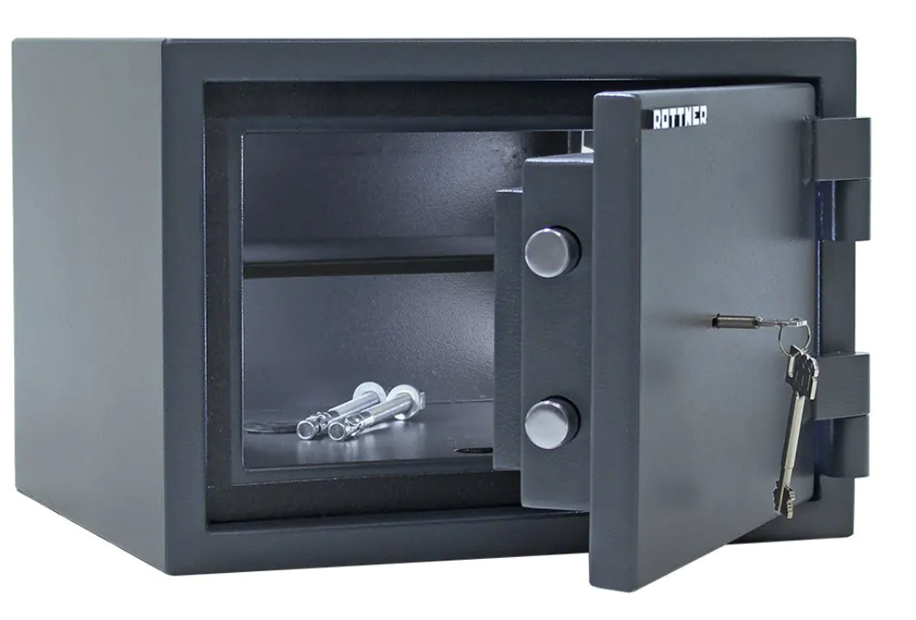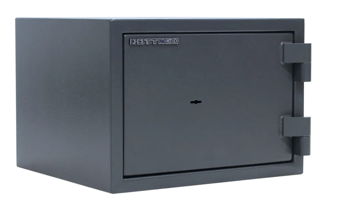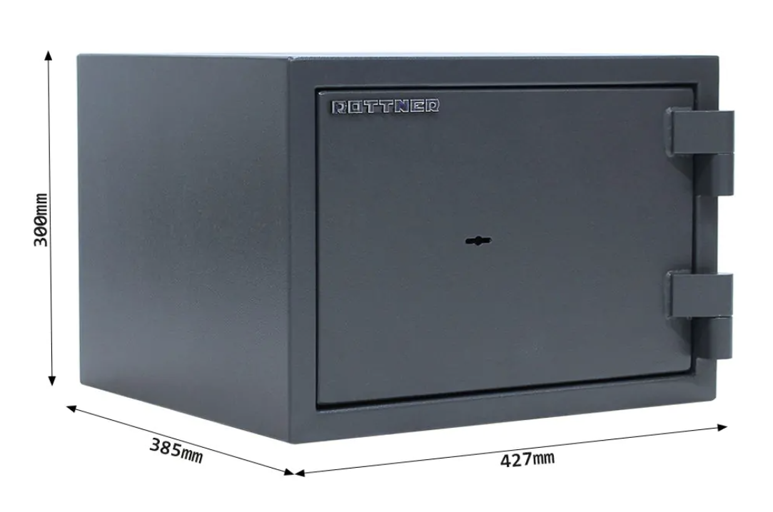 Rottner Fire Hero 30 ohňovzdorný trezor antracit Certifikovaný trezorový zámok s 2 kľúčmi Bezpečnostná trieda I (ČSN EN 1143-1) Ohňovzdornosť po dobu 30 minút pre papier 3-stranný uzamykací mechanizmus Korpus hrúbky 56 mm a dvere hrúbky 95 mm Nastaviteľná polička vo vnútri Otvorenie dverí až do 180° Možnosť doobjednania teleskopickej police Možnosť doobjednania teleskopickej registratúry Otvory na ukotvenie na spodnej strane trezora Vonkajšie rozmery: 300 x 427 x 385 (vxšxh) Vnútorné rozmery: 170 x 316 x 235 mm (vxšxh) Hmotnosť: 50 kg Farba: biela