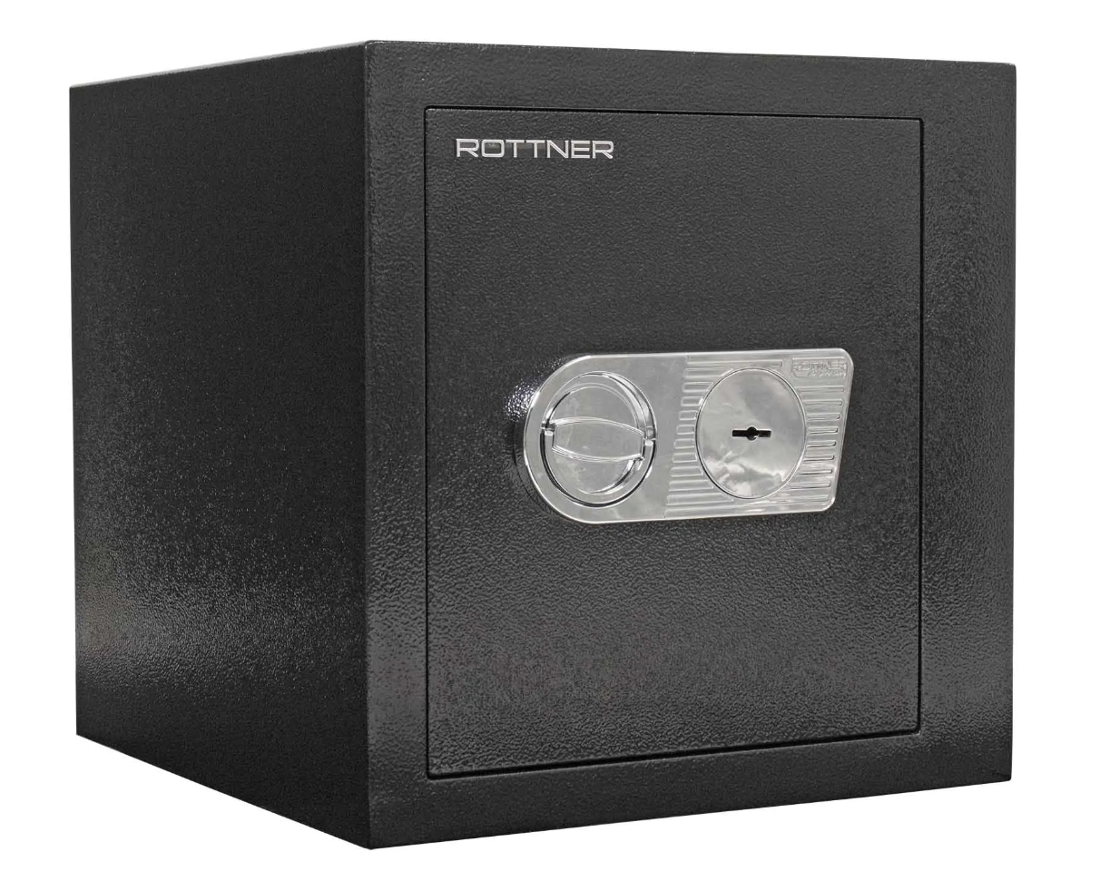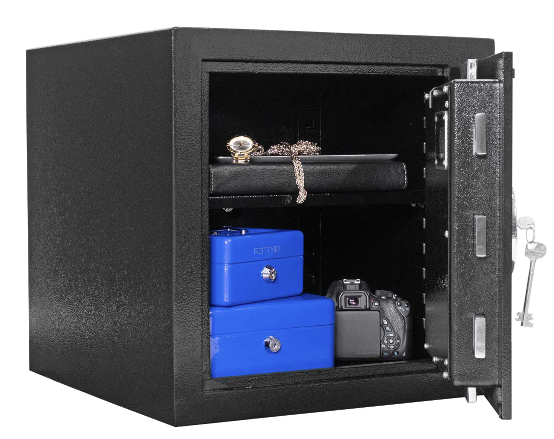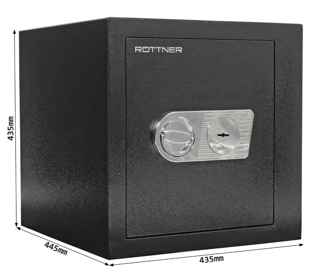 Dvere trezora sú vybavené 3 stranným uzamykacím mechanizmom. Vnútornú dispozíciu vhodne predeľuje polička. Trezor môžete pomocou pripravených otvorov na spodnej a zadnej strane ukotviť na podlahu alebo stenu. Kotviaci materiál je súčasťou dodávky.