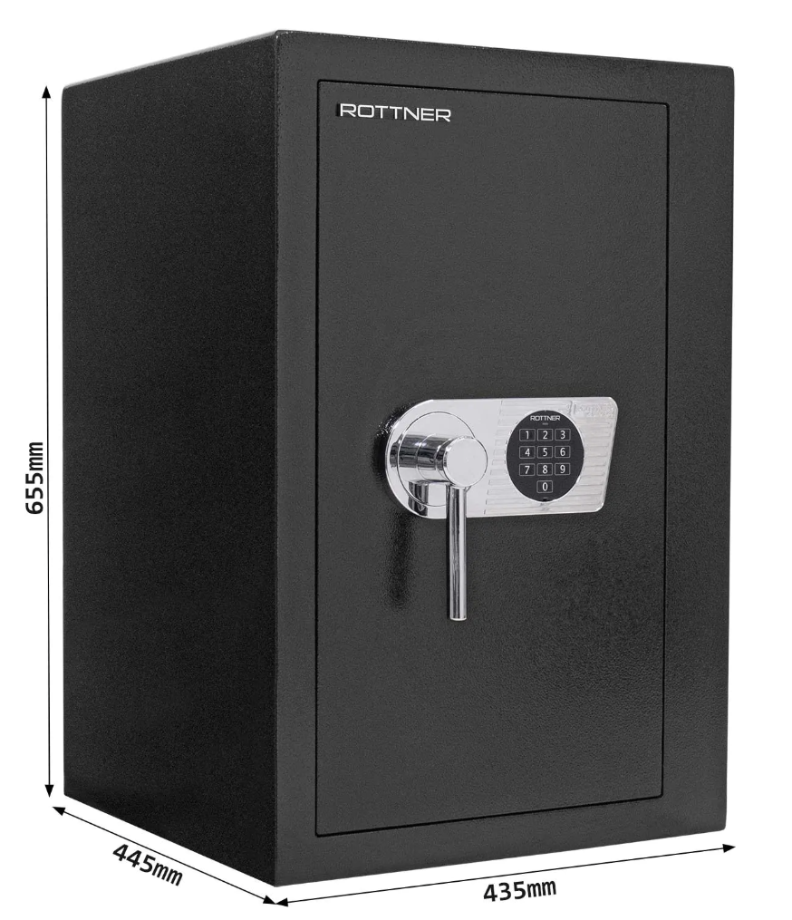 Klávesnica a elektronický zámok sú napájané klasickou 9V batériou. Dvere trezora sa uzatvárajú bezpečným 3-stranový uzamykacím mechanizmom. Pre lepšiu organizáciu uložených vecí je vnútro trezora vybavené praktickou poličkou. Spodná a zadná strana trezora má pripravené otvory na ukotvenie. Kotviaci materiál je súčasťou balenia.