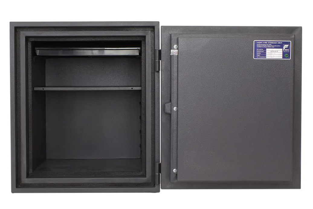 Ohňovzdorný trezor elektronický Sydney 55 Elektronický zámok bez núdzového otvárania Trieda požiarnej odolnosti S60P (EN 15659) Napájanie 4 x 1,5V AAA batériou (nie je súčasťou balenia) Malá priehradka vnútri v hornej časti na dokumenty Dvojplášťový sejf z ocele Špeciálna výplň proti ohňu (60 minút pre papier) Otvory na ukotvenie na spodnej strane trezora núdrové otváranie: hlavný kód Maser code váha: 56 kg vnútorný rozmer :405 x 340 x 290 vonkajší rozmer:515 x 445 x 450 farba: antracit počet otvorov na spodnej strane: áno prevŕtané otočná páka vnútorná teplota do 170 °C. Kritická teplota pro papír je 177 °C.