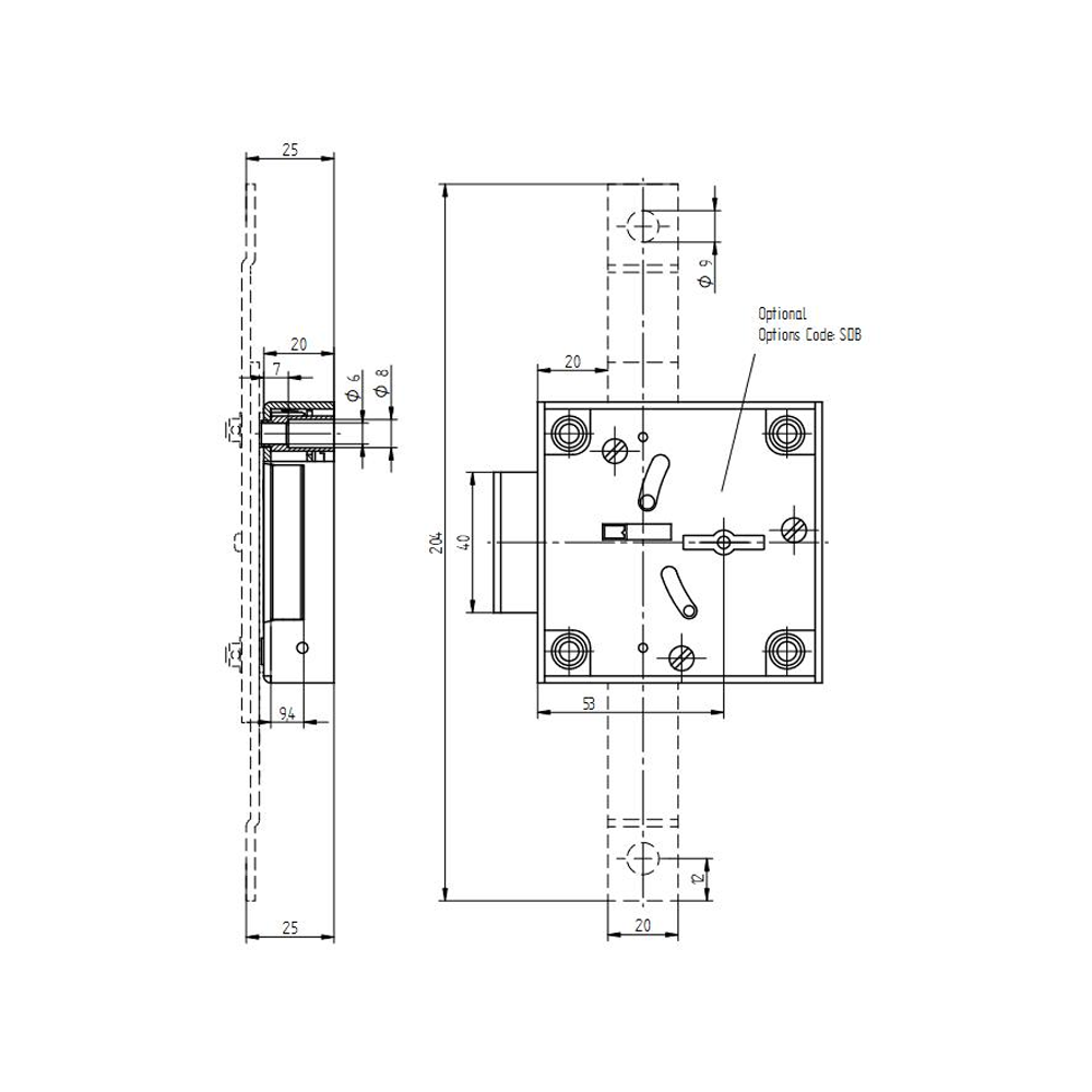 Mechanický zámok na kľúč 72081 Curator 80, Zámok na vnútorné použitie, 2 dvojbitové bezpečnostné kľúče, dĺžka 55 mm, Pravostranný zámok, otváranie v smere hodinových ručičiek,