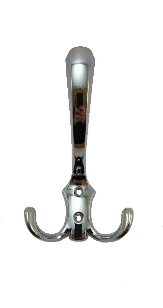Vešiak šatňový s troma háčikmi ( jedným veľkým a dvoma malými). Skrutky pre montáž vešiaka súčasťou balíka. Farba: lesklý chróm.