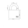 Obojstranne istený strmeň zámky s vysokou odolnosťou proti rezaniu, strihaniu a úderom kladiva (BORON). Uzamykateľný strmeň iba zatlačením do telesa bez použitia kľúča. Teleso zámky z mosadze, povrchová úprava matný chróm. V balení 3ks kľúčov.