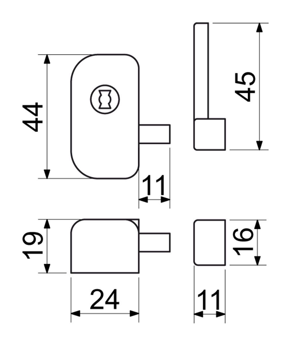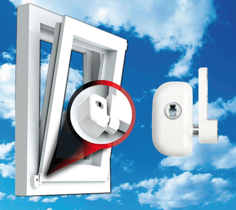BEZPEČNOSTNÍ VÝKLOPNÝ ZÁMEK PRO PLASTOVÁ, HLINÍKOVÁ A DŘEVĚNÁ OKNA Umožňuje bezpečné otevření křídla pouze do polohy „větrání“. Zabraňuje nežádoucímu otevření dveřního křídla zevnitř. Zvyšuje zabezpečení z vnější strany okna. Zádržná síla: 1.000 N (100 kg) Barvy: světle hnědá (RAL8003) Balení: 1 ks klíce a 4 ks samořezných vrutů