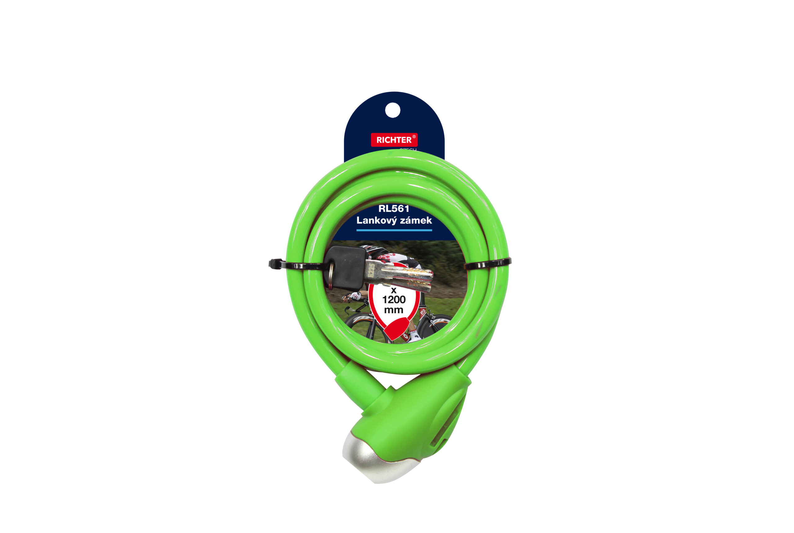 Designový lankový zámok s obojstranným kľúčom. Vložkazámku so 4-mi odpruženými stavítkami. Rozmery: priemer: 10 mm, dĺžka: 1200 mm V balení 2ks kľúčov. Farba: zelená