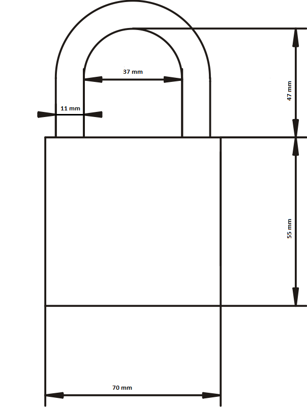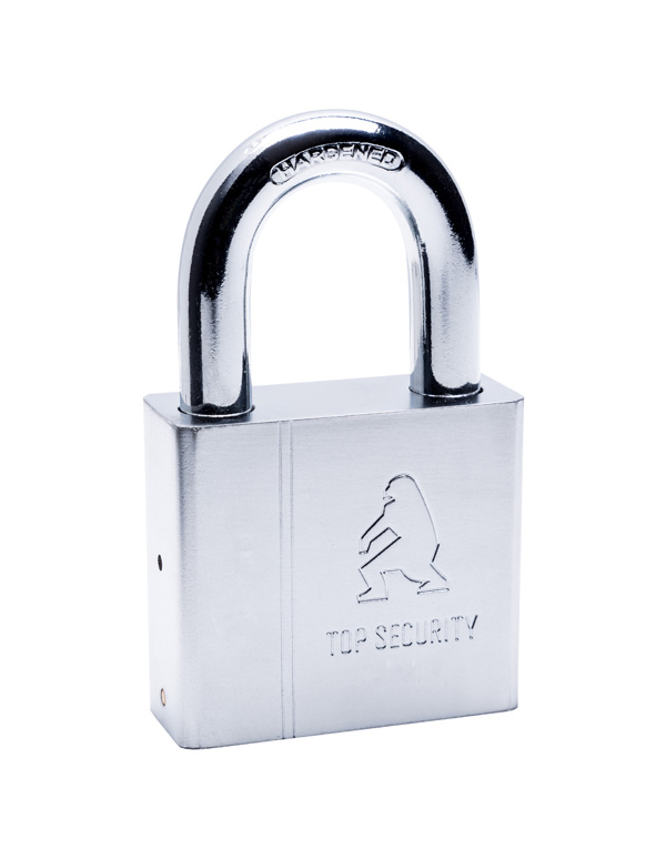 Liatinový visiaci zámok pokrytý saténovým povlakom, vybavený bubnovým mechanizmom. Dodávaný s 3 kľúčmi.