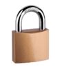 Liatinový visiaci zámok s kaleným oblúkom. Západkový mechanizmus. Farebné prevedenie: zlatá Dodávaný s 3 kľúčmi.