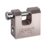 Masívny trezorový visiaci zámok, telo potiahnuté niklom.
