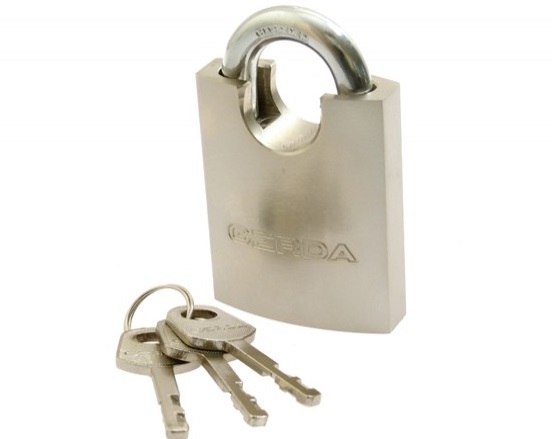 Bezpečnostná zámka Gerda Povrchová úprava: Nikel Materiál. Mosadz Rozmery: A – 50mm B – 64mm C – 9mm D – 26mm E – 20mm Počet kľúčov: 3ks