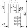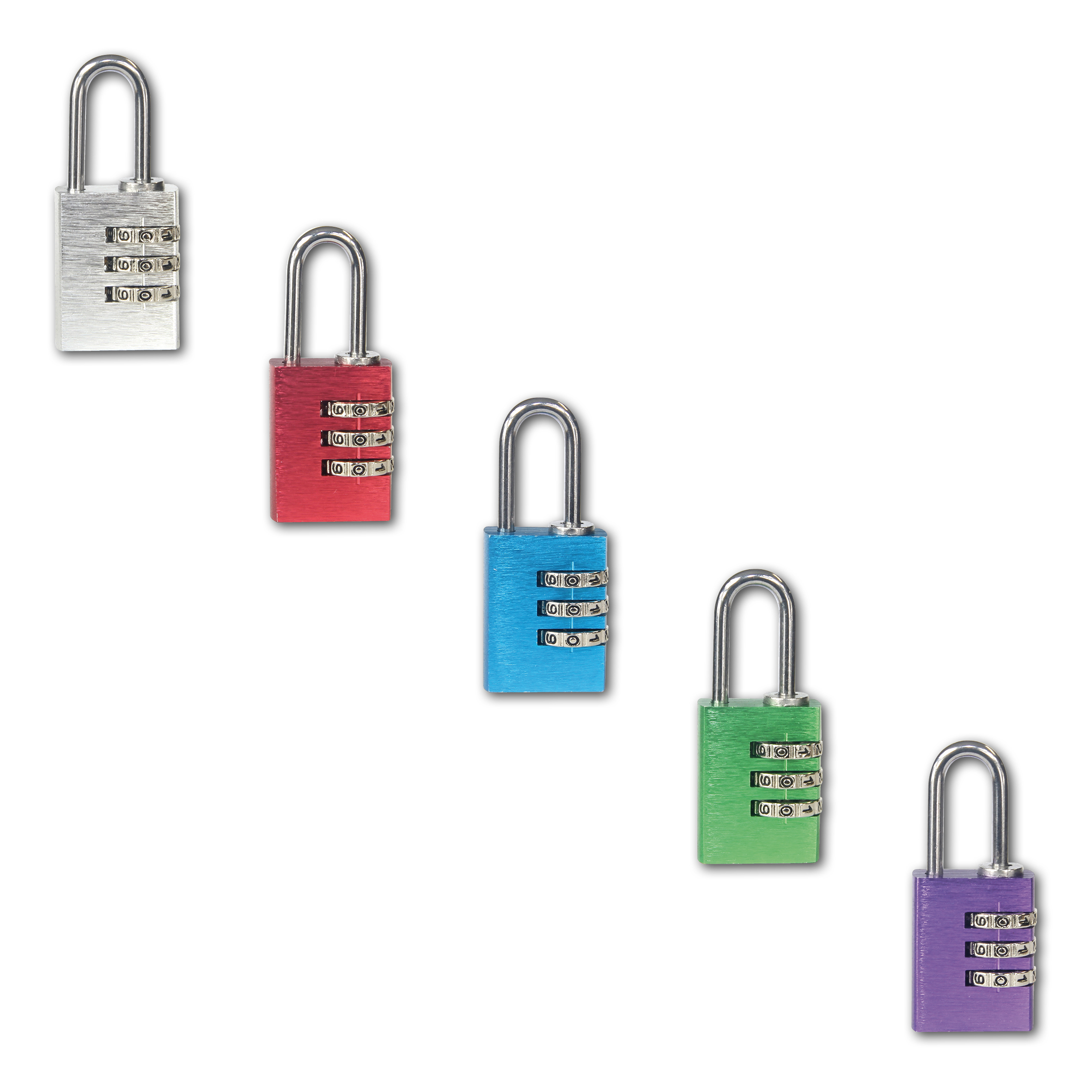 Hliníkový kódový visiaci zámok s eloxovyným povrchom. Ideálne pre zabezpečenie šatníkových skriniek a batožiny. Nastavenie vlastnej kombinácie, ktorú môžete kedykoľvek zmeniť. 1.000 kombinácií zámku. Farba: strieborná, červená, modrá, fialová, zelená Hmotnosť zámku: 0,03 kg