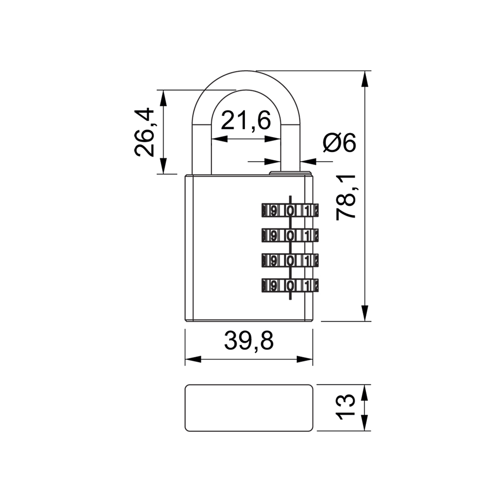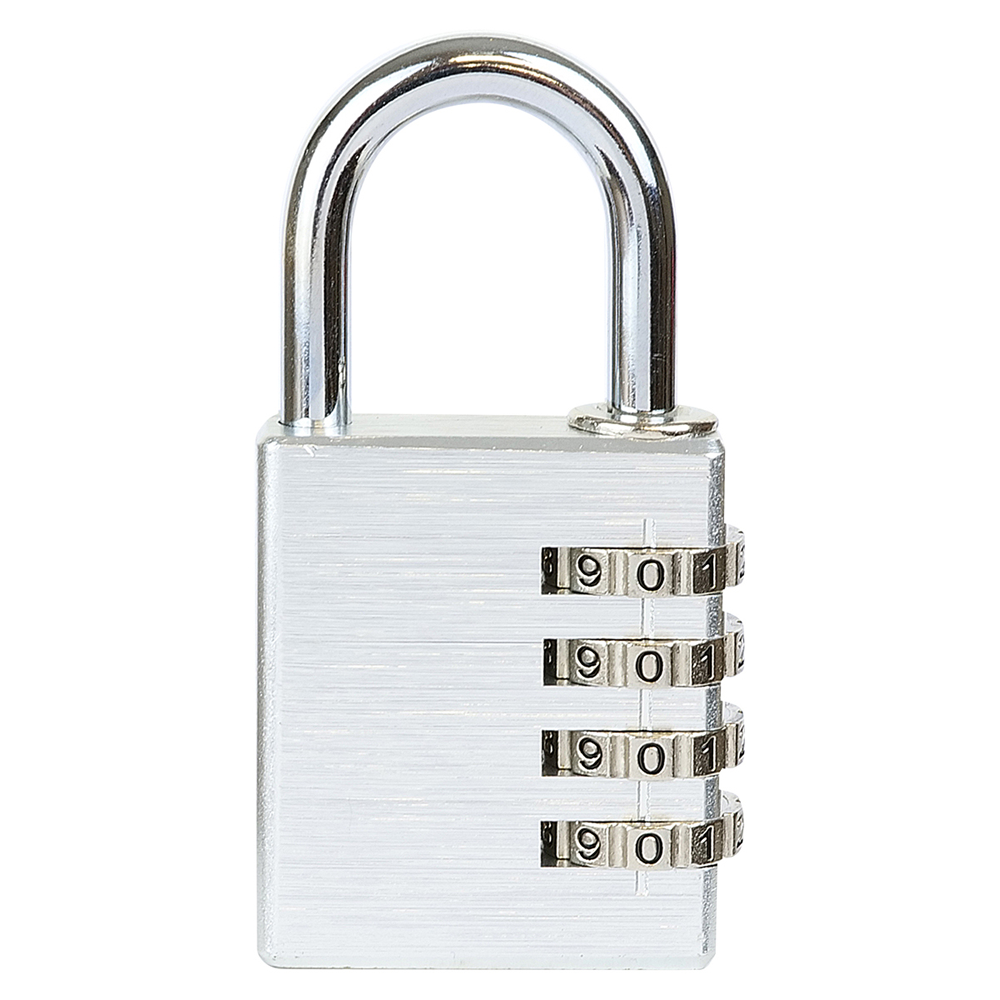 • Ideální pro zabezpečení šatních skříněk a zavazadel • Nastavení vlastní kombinace, kterou lze kdykoliv změnit • 10.000 kombinací zámku. Hmotnost netto: • 0,100 kg Barva: • stříbrná