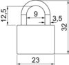 Hliníkový visiaci zámok s plastovým krytom. Strmeň HARDENED. Zamýkanie bez kľúča – zatlačením strmeňa. Vložka zámku s 3 odpruženými stavítkami Hmotnosť netto: 0.03 kg/1ks V balení 2ks farebných kľúčov. Farby: červená, modrá, oranžová, sivá