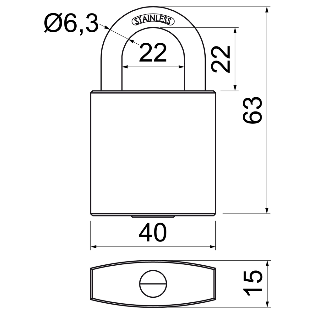 • Třmen a těleso zámku z nerezové oceli