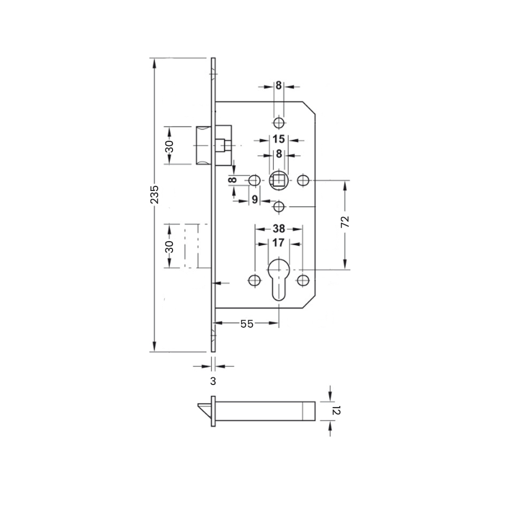 Zámok je vhodný pre dverné krídla (dvere) s hmotnosťou až 100kg.