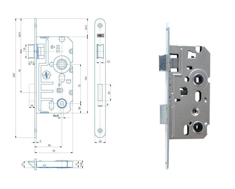 zámok na WC s hranolo 4×4 ľavý