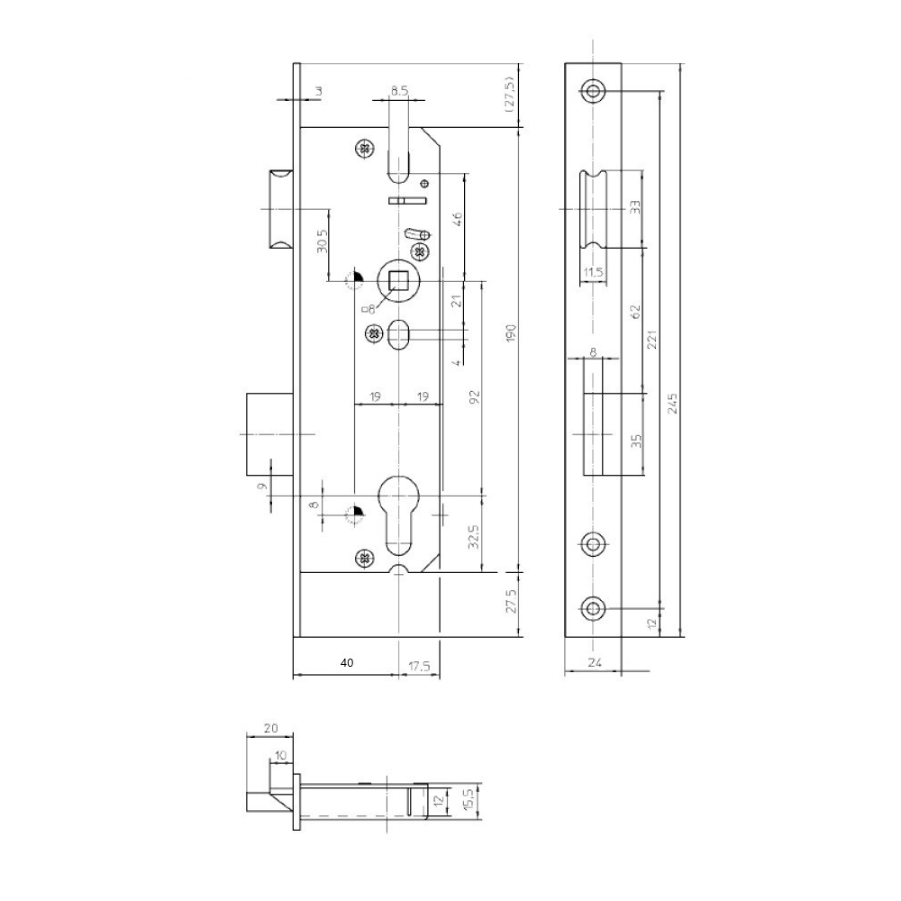 Určený pre pravé aj ľavé dvere Rozteč:92mm dormas: 40mm šírka prednej lišty: 16mm šírka na hranol: 8mm