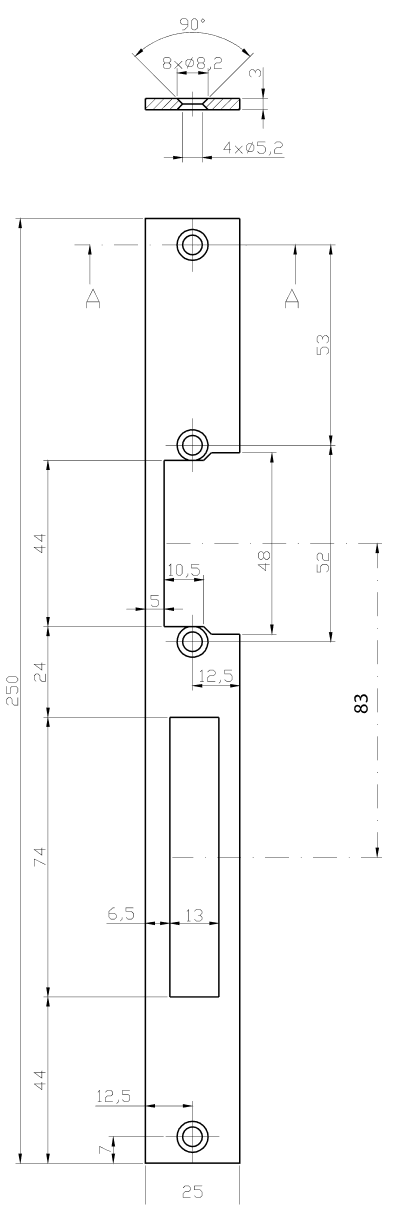 Protiplech HARTTE 250×25 dlhý D 3mm STC OK-P5