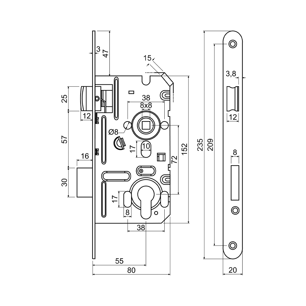 Zadlabací zámek pro cylindrickou vložku – PZ