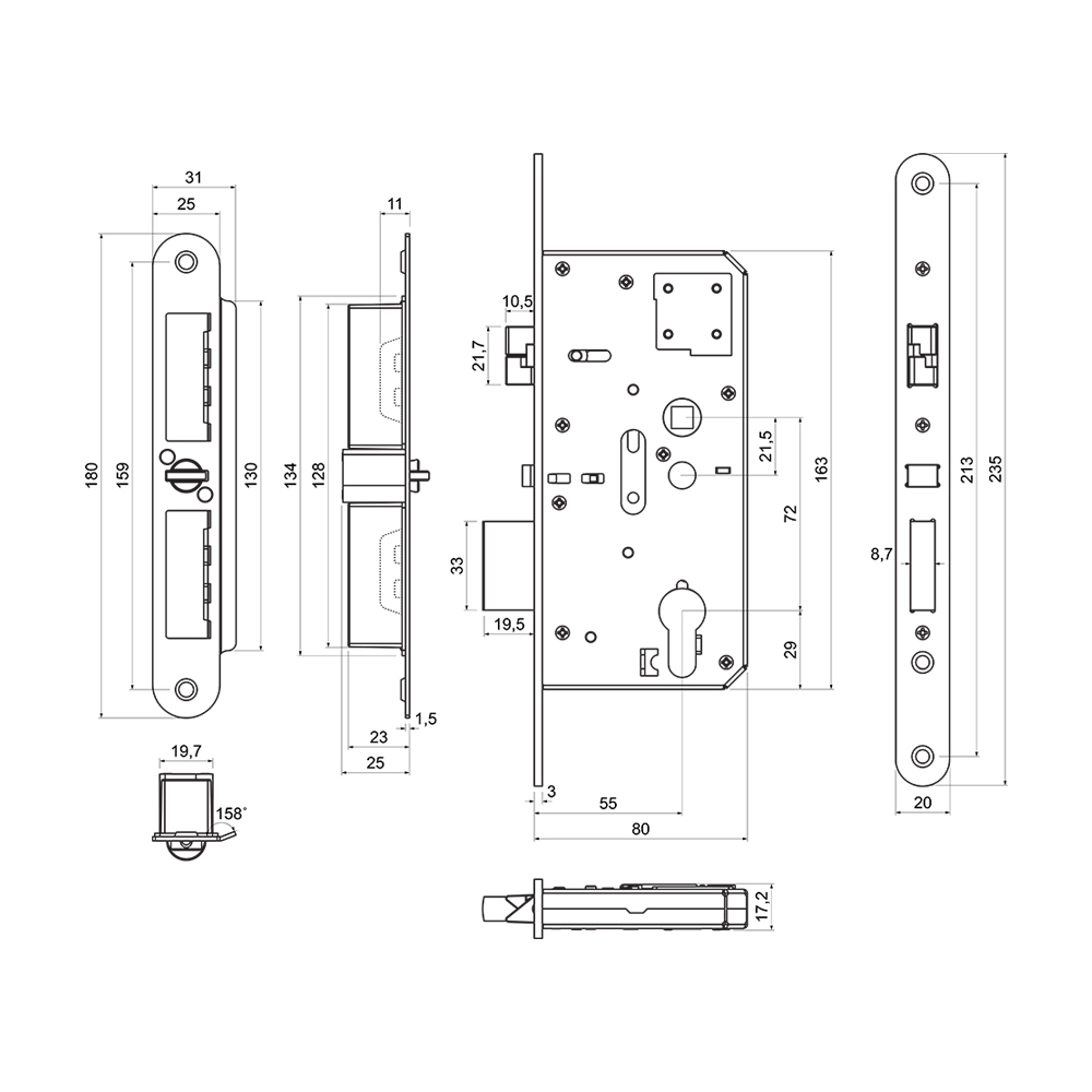 Protiplech obsahuje špeciálny odpružený protikus pomocnej strelky zámku.