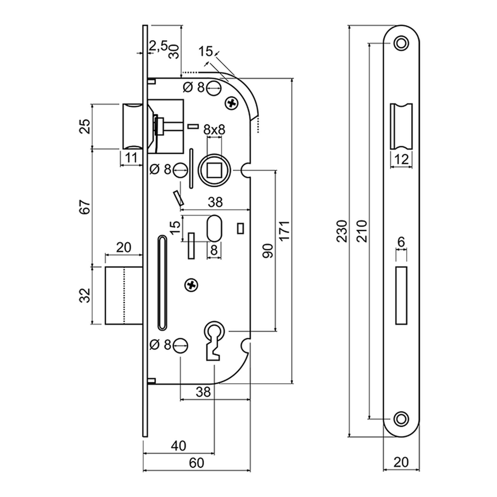 Zadlabací zámek pro tvarový klíč – BB