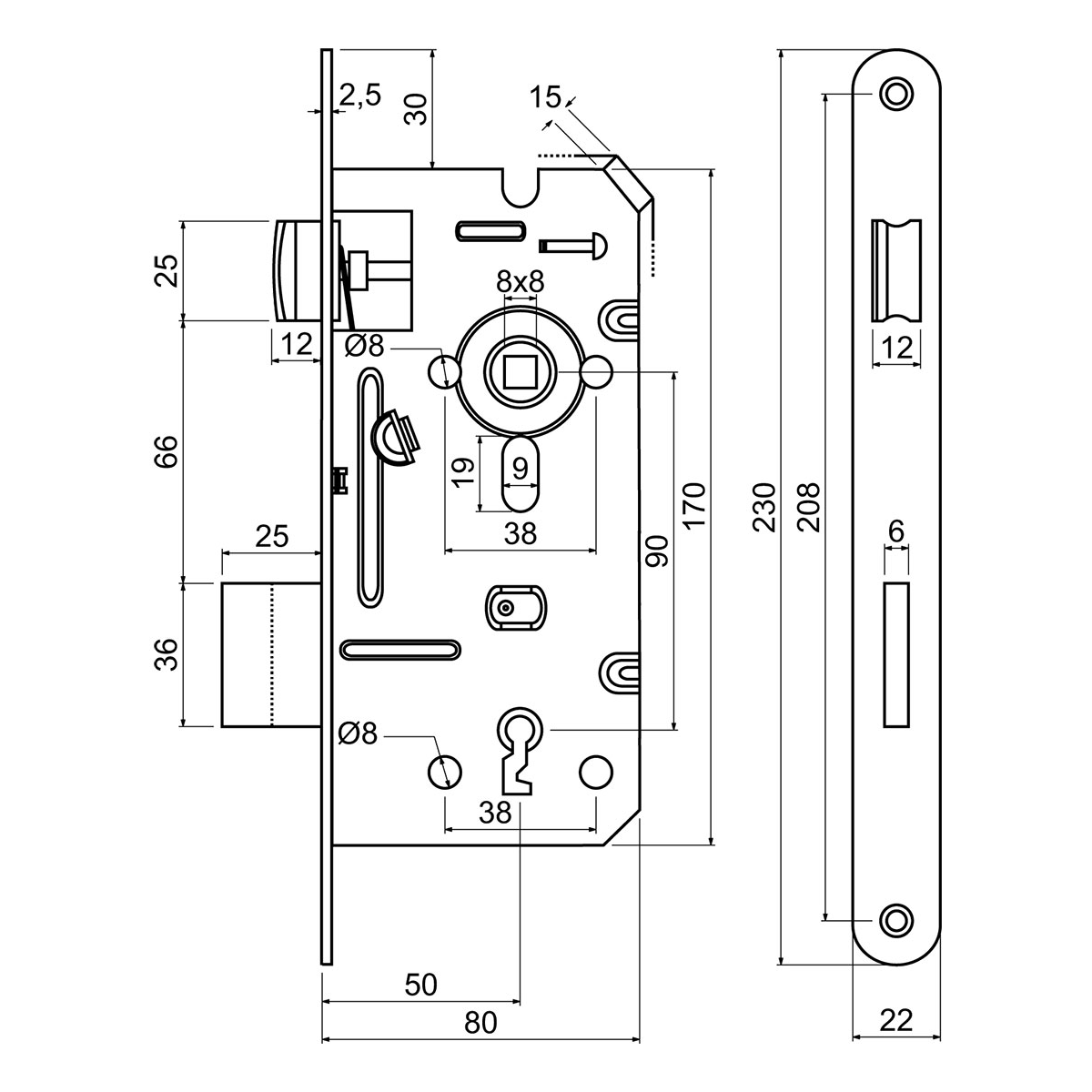 Zadlabací zámek pro dozický klíč – BB