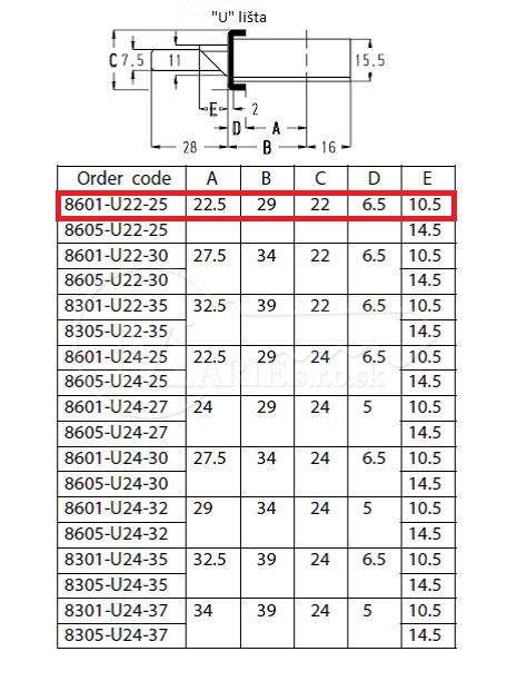 ZZ Sobinco 8601 92/22,5/29/U22/274 U-lišta