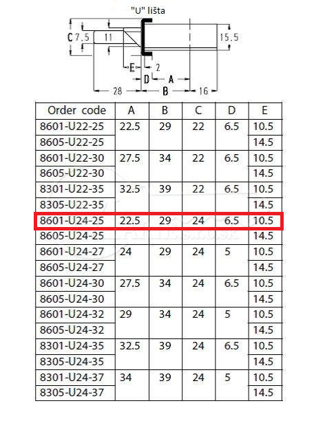 ZZ Sobinco 8601 92/22,5/29/U24/274 U-lišta