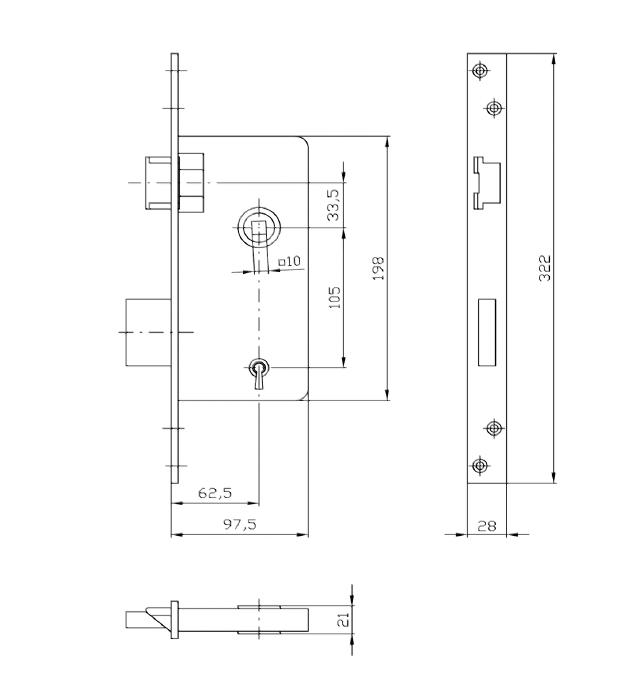 Zlatnik zadlabací vratový zámek dozický klíč rozteč 105mm pravý x levý