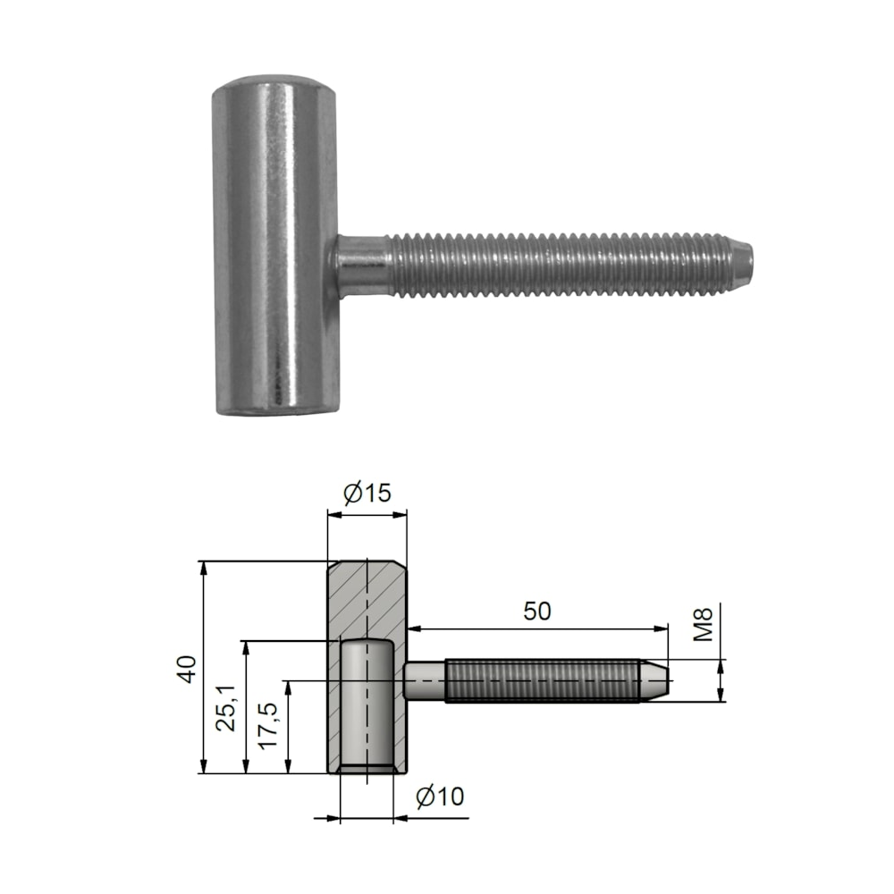 Záves TKZ 80/10 M8 VD ZZn vrchný diel